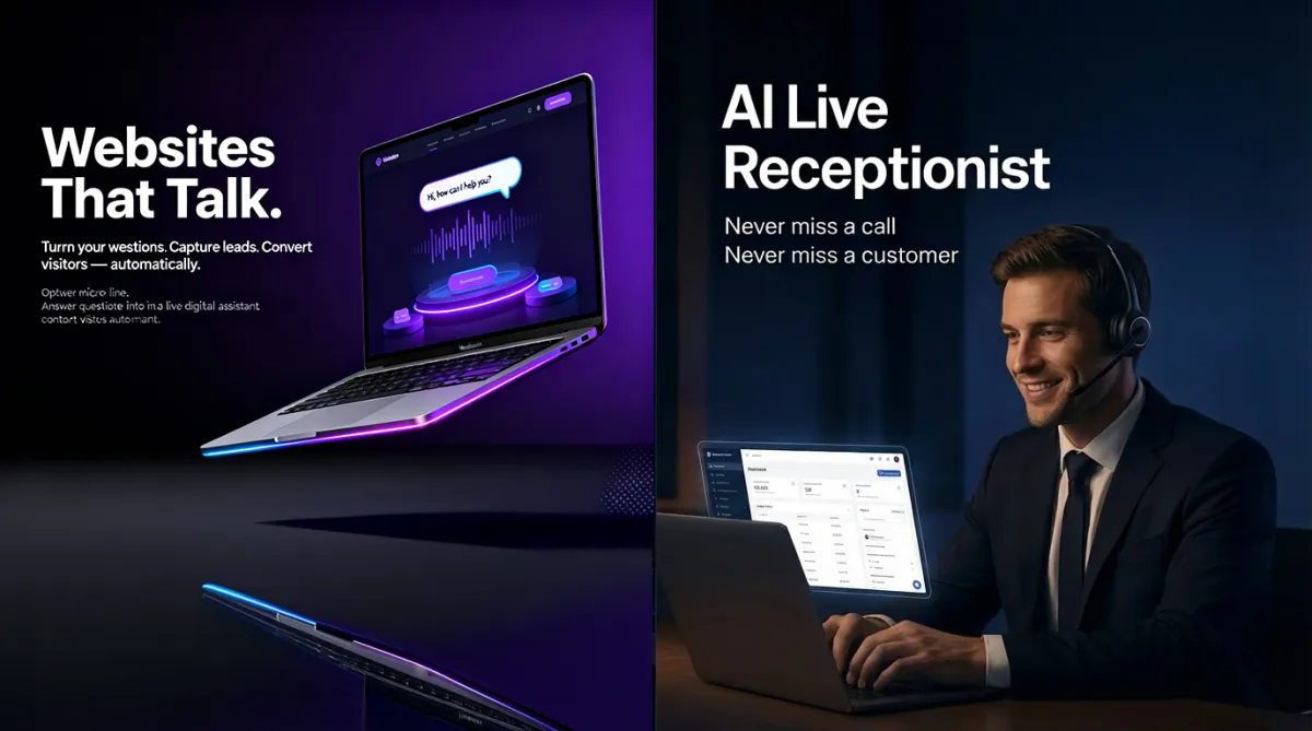 Bundle Upgrade (Best Value): Get both the Talking Website + AI Live Receptionist for $347/mo. Pay $0 setup today (no $299 fees times two) and lock in for an additional $150 off per month for the life of your subscription. One system that answers visitors, calls, texts, DMs, and Google messages—so fewer leads slip away.